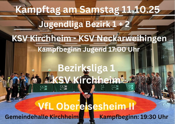 18.00 Uhr Jugendliga KSV Kirchheim – KSV Neckarweihingen Griechisch-römisch