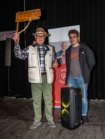 Herr Seitz begeisterte durch seinen Auftritt mit einer traditionellen Rätsche. Auch einige Gäste versuchten sich im Rätschen.