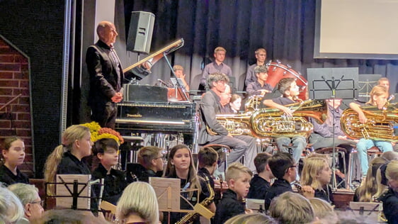 Beim Preisträgerkonzert am 19.10. in der Stadthalle Korntal war das riesengroße Musiker-Team geladen, um noch einmal vor Publikum und vielen Ehrengästen einen Teil des Programms darzubieten. So durften der Musikverein Stadtkapelle Bönnigheim mit großem Orchester und Schülerorchester und die Musikschule Bönnigheim zeigen, dass die Kooperation mit den Bläserklassen der Ganerbenschule Bönnigheim, der Schule auf dem Laiern Kirchheim und der Grundschule Erligheim-Hofen den sensationellen 1. Preis, den sie errungen hatten, zu Recht verdient haben. Die Jüngsten zogen musizierend in die Stadthalle ein, anschließend zeigten die Großen ihr Können und zum Abschluss wurde sogar gemeinsam gespielt. Der Applaus war groß – mit stehenden Ovationen wurden die Sieger verabschiedet.