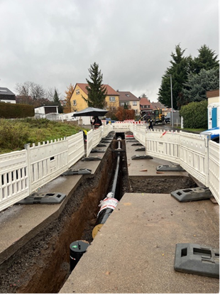 Der Ausbau der Nahwärmeinfrastruktur schreitet im gesamten Ortsgebiet sichtbar voran. Bereits während der Sommerferien wurde die Nahwärmeversorgung im Bereich der Friedrichstraße erweitert. Verlegt wurden Teile der Leitungen zur zukünftigen zentralen Heizzentrale.