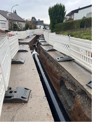 Derzeit werden die Arbeiten im Gebiet der Uhlandstraße fortgeführt. Dabei handelt es sich um dieselbe Leitungstrasse wie in der Friedrichstraße, sodass die dort verlegten Leitungen unmittelbar fortgeführt werden.