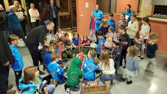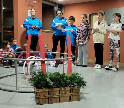 Im Mittelpunkt stand der Waschbär und Rhönrad-Maskottchen Willi „Wheely“, der traurig war, weil es bei ihm noch gar nicht weihnachtlich zuging. Gemeinsam mit den Kindern verwandelte er deshalb kurzerhand ein Rhönrad in einen Adventskranz – das „Rhönrad des Lichts“.