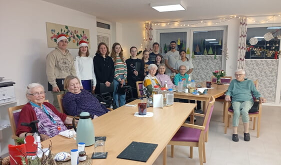 Zum gemeinsamen Weihnachtsliedersingen besuchten die Jugendlichen vom Liederkranz Kirchheim die Bewohner:innen in der Pflege-WG im Anna-Riecker-Haus.