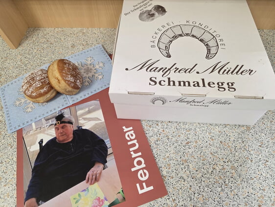 Wie schon zu Lebzeiten ihrer Mutter brachte Frau Heger auch dieses Mal wieder Berliner vom Bodensee mit – eine schöne Tradition, die sie jedes Jahr zum Geburtstag ihrer Mutter gepflegt hat. Die süße Aufmerksamkeit wurde von den Bewohnerinnen und Bewohnern mit großer Freude angenommen und weckte viele schöne Erinnerungen.