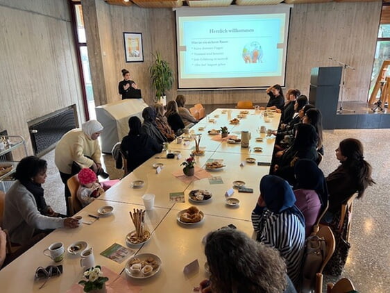 Frau Hartmann sprach vor 19 Frauen aus mehr als 10 Nationen. Sie zeigte das Thema mit vielen Beispielen aus der Praxis. Danach gab es noch viele Fragen, die Frau Hartmann beantwortet hat. Vielleicht sehen wir sie im nächsten Jahr wieder. Vielen Dank an das ehrenamtliche Team, das den Vormittag wieder gut organisiert hat.