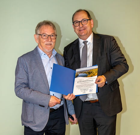 Als Anerkennung für diese Verdienste sprach Seibold persönlich und im Namen der gesamten Gemeinde sowie der Damen und Herren des Gemeinderates seinen Dank aus. Mit den Worten „Ich freue mich sehr, Dein langjähriges, vorbildliches und außergewöhnliches Engagement im Turnverein und auch darüber hinaus mit der Bürgermedaille der Gemeinde würdigen zu dürfen. Herzlichen Glückwunsch dazu und vielen, vielen Dank“ überreichte der Bürgermeister die Bürgermedaille der Gemeinde Kirchheim am Neckar. Die Bürgermedaille würdigt herausragendes ehrenamtliches Engagement, das über das Maß hinausgeht und der Gemeinde zugutekommt. In diesem Fall würdigt sie ausdrücklich das außerordentliche Engagement von Friedhold Lück für den TVK und die Gemeinde Kirchheim über viele Jahrzehnte hinweg.