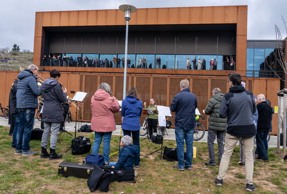 Im Anschluss an den Gottesdienst fand ein Kurrendespiel statt: In drei Gruppen aufgeteilt, musizierten die Bläserinnen und Bläser an verschiedenen Stationen im Ort und brachten so die Musik direkt zu den Menschen in die Gemeinde.