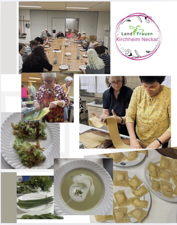 Beim Kochworkshop der Landfrauen am 15. April drehte sich alles um die Frühlingskräuter – allen voran um den aromatischen Bärlauch. Mit viel Freude und Eifer bereiteten 20 Frauen gemeinsam verschiedene Köstlichkeiten zu. Bärlauchspätzle, Pesto mit Bärlauch, selbst gemachte Ravioli mit Ricottafüllung und dazu Zitronenbutter sowie ein frisches Kräuterschaumsüppchen. In geselliger Atmosphäre wurde geschnippelt, gekocht und gelacht, bevor am Ende alle gemeinsam die selbst zubereiteten Gerichte genießen konnten. Ein rundum gelungener Abend voller Genuss und Gemeinschaft.