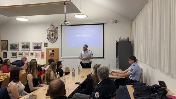 Am selben Mittwochabend folgte ein weiteres Highlight: Ein gut besuchter Vortrag zum Thema Sonderlagen (u. a. Amoklagen und lebensbedrohliche Einsatzlagen – LebEL). PHK Hendrik Müller vom Polizeirevier Bietigheim-Bissingen stellte gemeinsam mit EPHK Ruben Wald, Postenleiter Kirchheim, das komplexe Thema anschaulich und kurzweilig vor. Der Abend fand großen Anklang. Neben den eigenen Bereitschaftsmitgliedern aus Kirchheim waren Gäste aus den Ortsvereinen Vaihingen an der Enz, Sachsenheim, Besigheim, Ludwigsburg, Steinheim an der Murr, Murr und Großbottwar sowie von der Feuerwehr Kirchheim anwesend. Besonders wertvoll war der Austausch: Gerade bei anspruchsvollen Einsatzlagen ist es von großem Vorteil, die beteiligten Einsatzkräfte bereits im Vorfeld persönlich kennengelernt zu haben.
