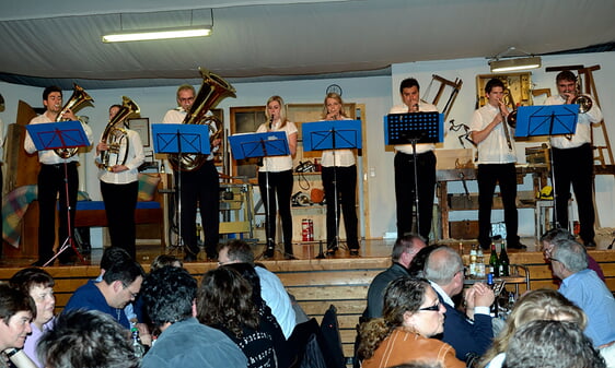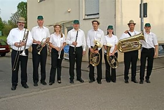 Die Theaterkapelle besteht seit jeher aus Musiker:innen der Aktiven Kapelle. Sie setzt sich zusammen aus Klarinette, Trompete, Tenorhorn, Posaune, Tuba und Schlagwerk. Zeitweise auch schon mit Flügelhorn und Saxofon.